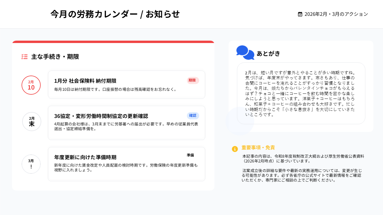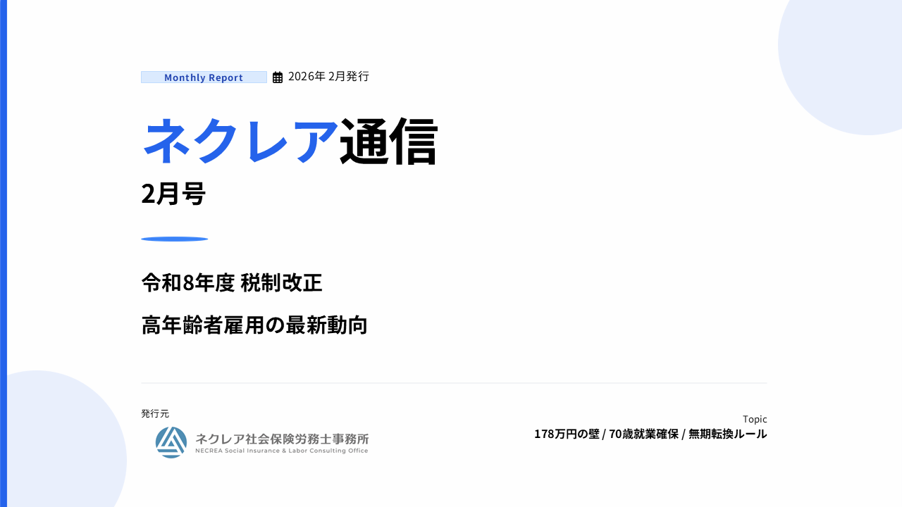 【ネクレア通信】ネクレア通信2月号を発行しました ―「178万円の壁」到来と、組織の未来を考える―(2026.2.3)