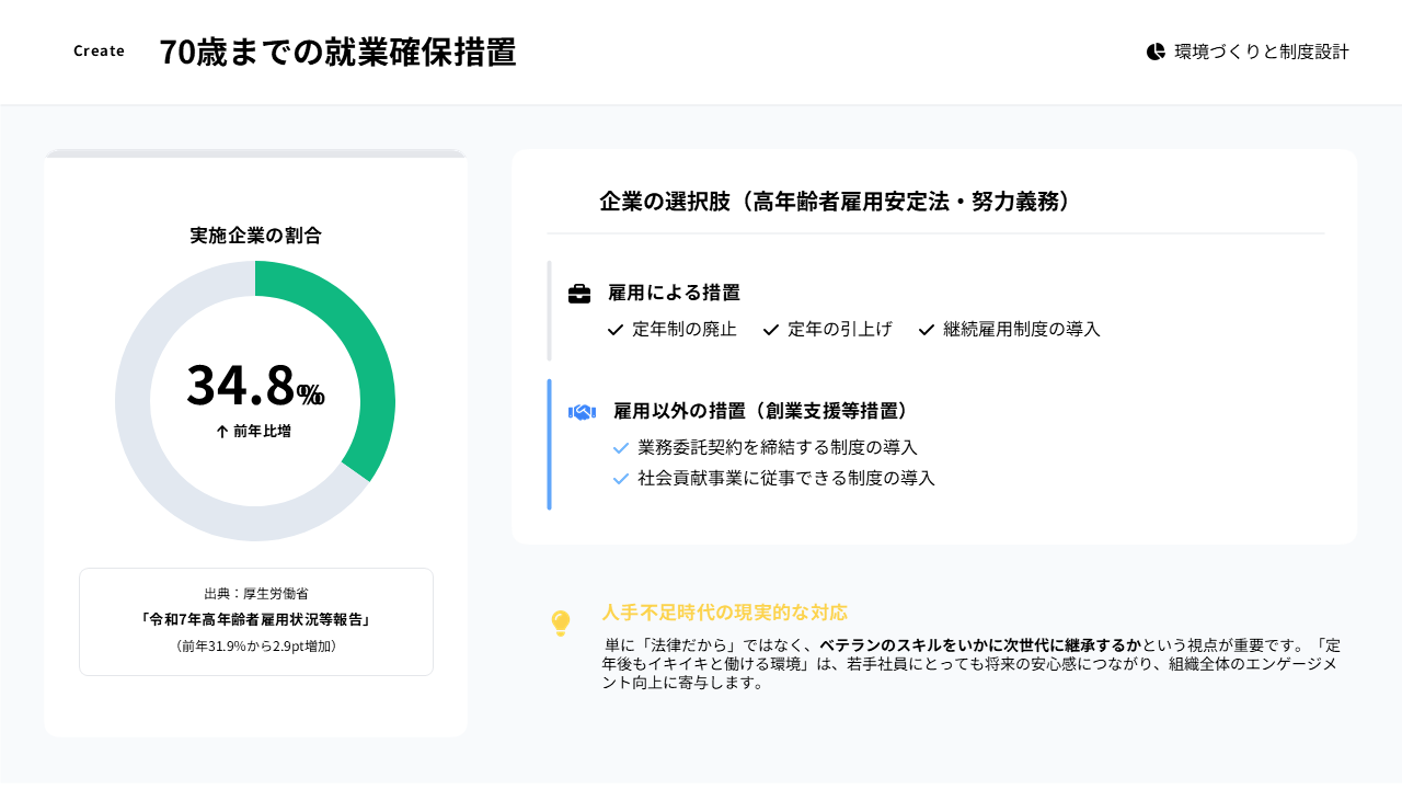 【Create:高年齢者雇用】70歳就業確保の現在地